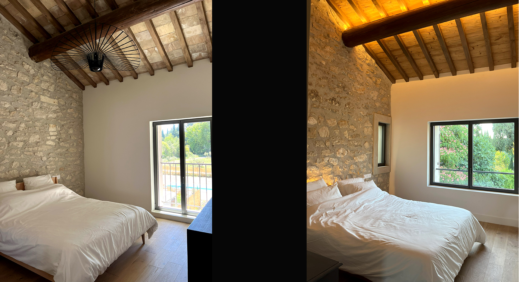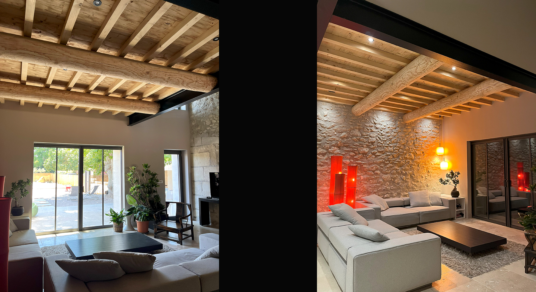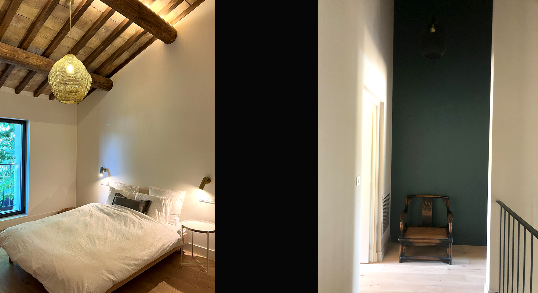 La pierre sera apparente sur les autres murs intérieurs par souci esthétique. Les planchers et charpentes en bois seront apparents et mis en valeurs grâce à l’éclairage. Une partie du rez de chaussée sera à double hauteur et une balconnade qui donne sur le salon sera créée au R+1